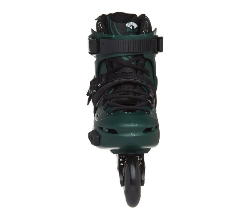 Patines Flying Eagle F6S Falcon. Las carcasas verde oscuro y los marcos EGO (rockerables) te permiten pasar del slalom urbano al freestyle en segundos. Las sólidas placas base de aluminio permiten múltiples posiciones de montaje del marco. Los F6S impresionan por su versatilidad, rendimiento y precio.